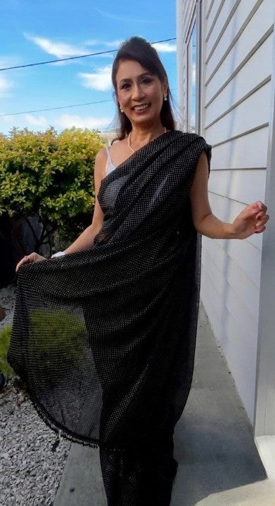 The Cinema Classic-B&W Polka Dot pre-draped georgette Saree