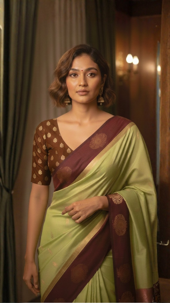 Add the Harit Aruna Kanjivaram saree to your collection and experience the seamless blend of tradition and modernity.