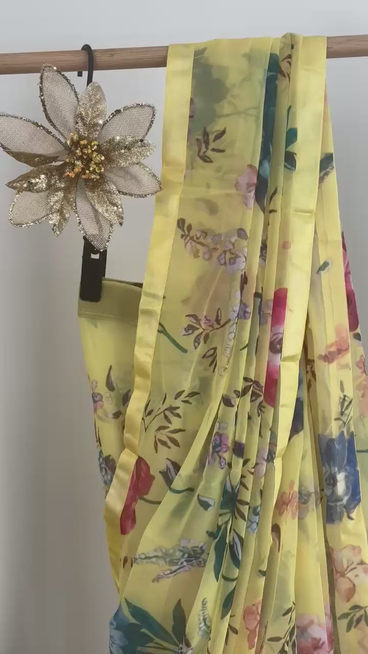 - Design: Faux Georgette saree with Floral Digital Print and Satin border