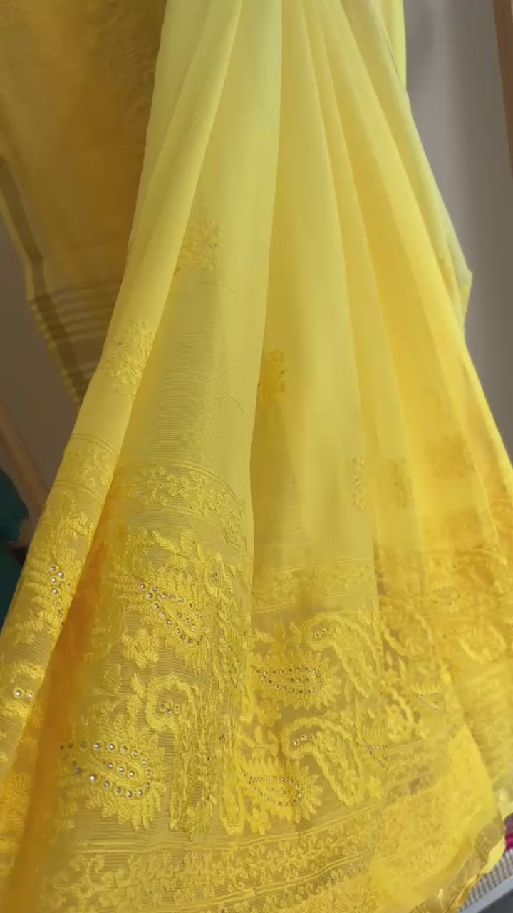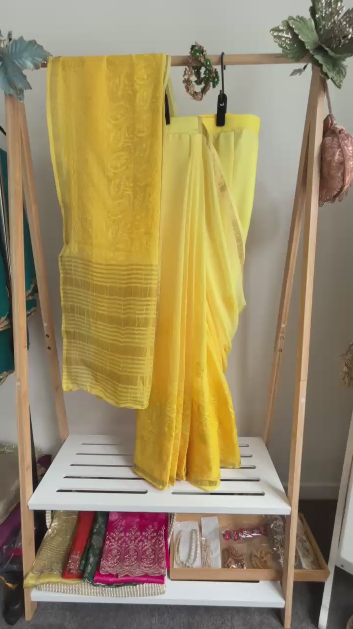 Marigold Glow – Yellow Ombre Saree with Gold Zari Border